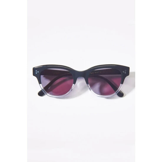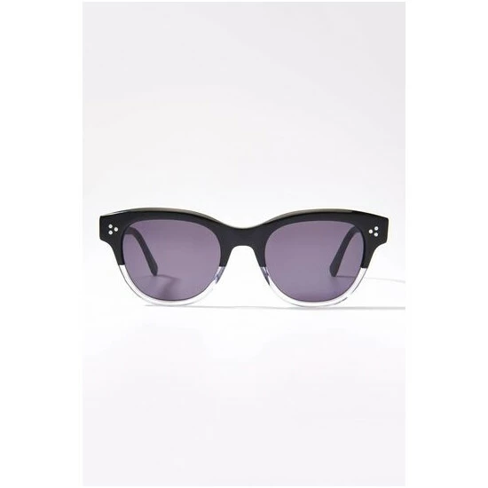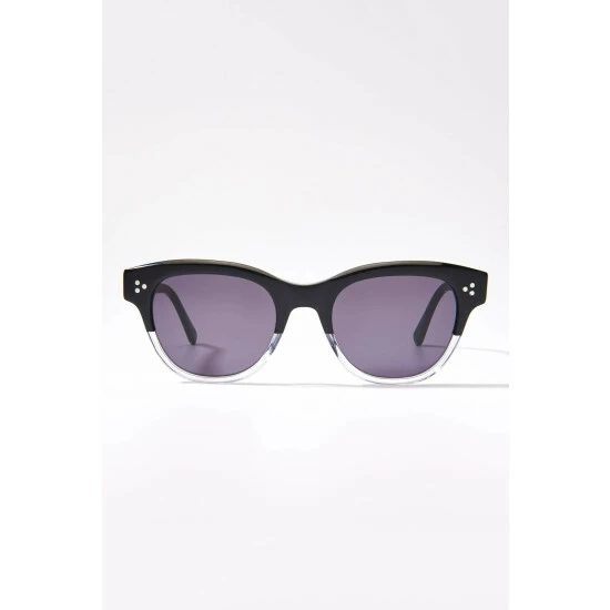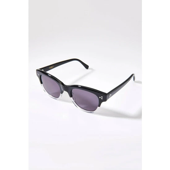 OSPREY LONDONÂ retro-inspired sunglasses with frames crafted in two tone black and translucent white Cellulose Acetate with three silver metal rivets on each side and with dark grey lenses which have been given a hard lens coating.
