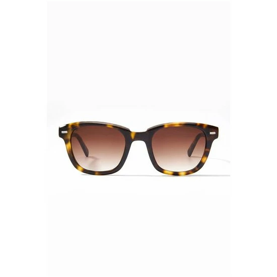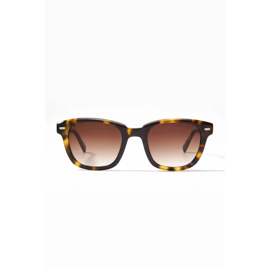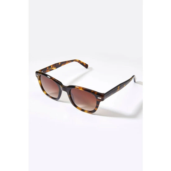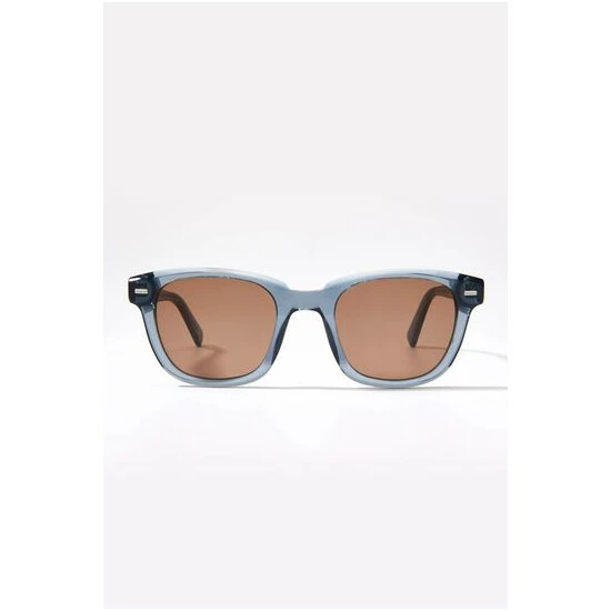 OSPREY LONDONÂ classic rectangular sunglasses, with the frames crafted in Cellulose Acetate in translucent smoky grey with a rectangular silver metal rivet on each side and with brown lenses which have been given a hard lens coating.