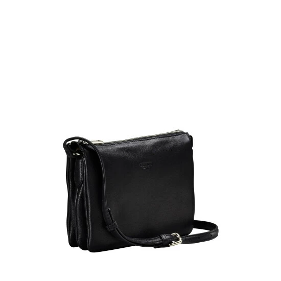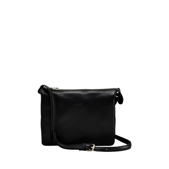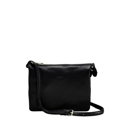 Reasons to love it: This compact design hides a tri-part interior to help you stay organised on the go. Chic and sleek in buttersoft black Natural Grain leather, this compact handbag is zipped along the top and opens to reveal three separate compartments plus two slip pockets and a zipped pocket to keep you beautifully organised on the go. If you’ve never used an organiser bag before, The Kelso will feel like a revelation. Designed to go with everything, the lightly padded leather strap is fully adjustable thanks to its silver metal buckle allowing The Kelso to be worn as a shoulder bag or across the body. Material: Natural Grain leather. Dimensions: H: 18 x L: 22 x W: 5 cm (35-65cm strap height).