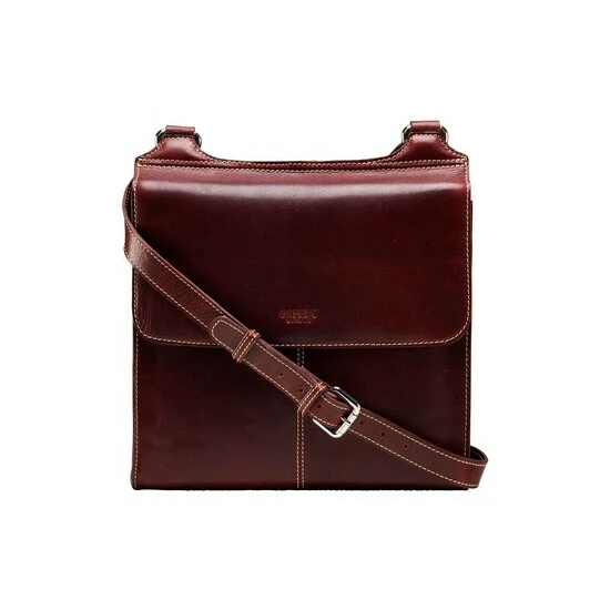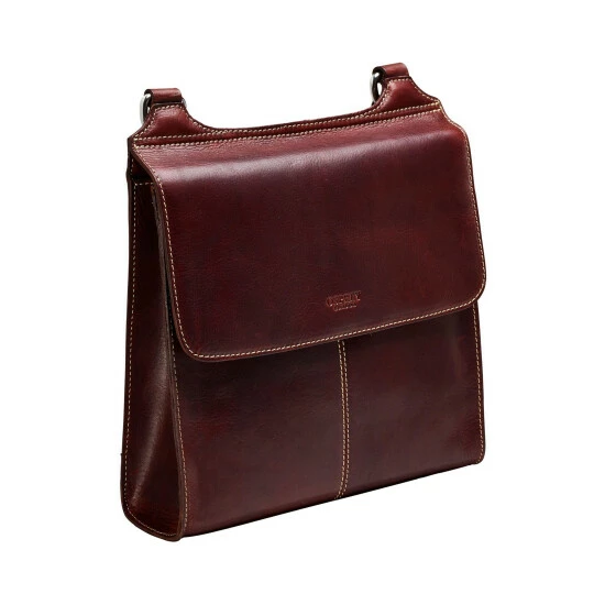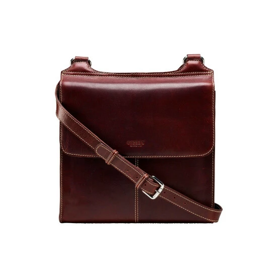 OSPREY LONDON A4-compatible cross-body bag handcrafted in cognac Saddle leather with sporty contrast stitching. The A4-compatible interior features two slip pockets and a zipped pocket with a smart leather zip-pull for smaller items. Dimensions: H: 30 x L: 28 x W: 8 cm (59-66cm strap height). Material: Saddle leather.