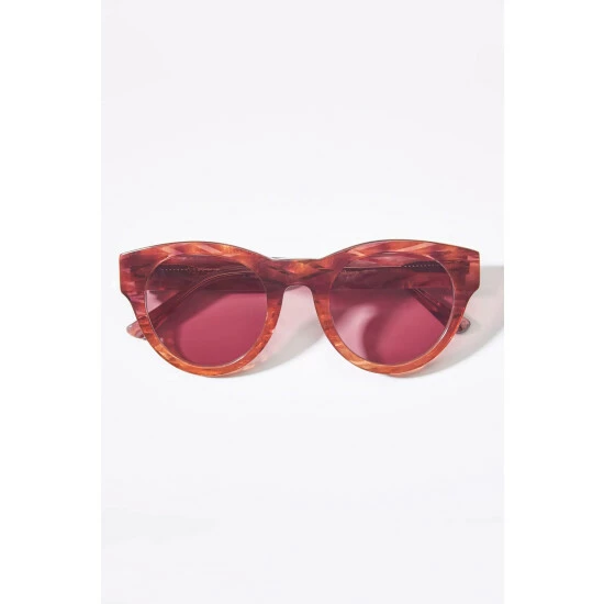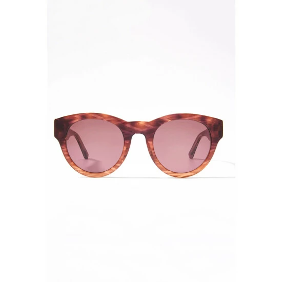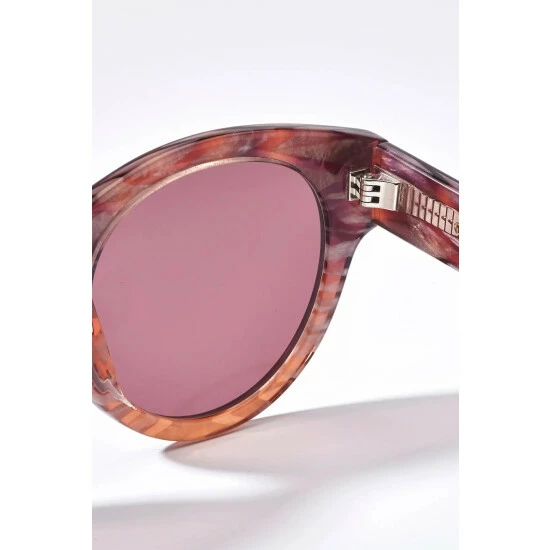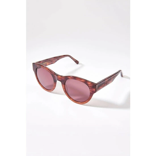 OSPREY LONDON sunglasses crafted in Cellulose Acetate in unusual, translucent grain tortoiseshell with roundish, brown lenses which have been given a hard lens coating.