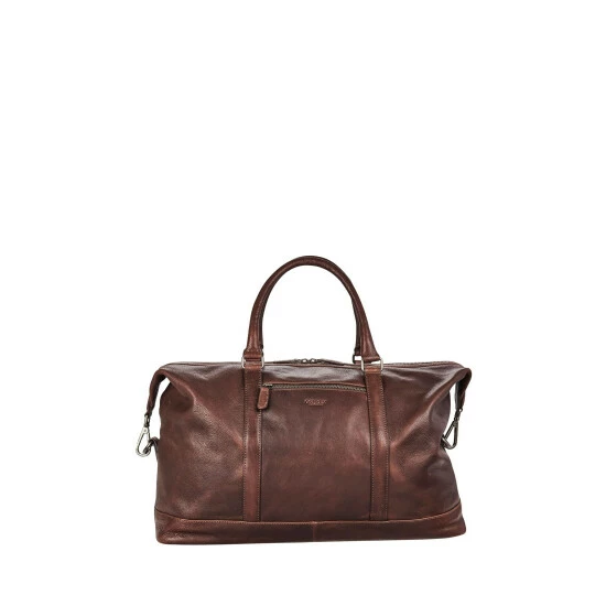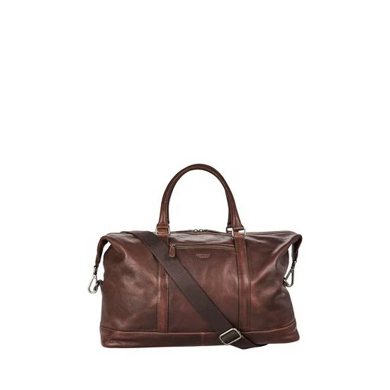 In characterful dark cognac leather with minimal gunmetal hardware, The Kennedy Leather Holdall is understated in style, with a wealth of practical details to make travel a breeze, from the adjustable/detachable webbing strap to the reinforced base and additional pockets both inside and out. H: 35 x L: 46.5 x W: 19.5 cm (19cm handle height) (27-63cm strap height).