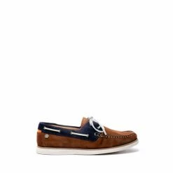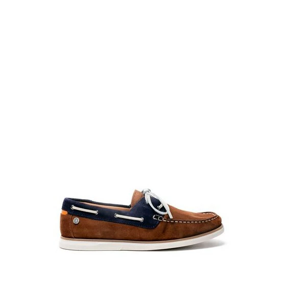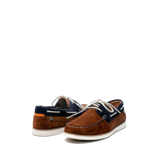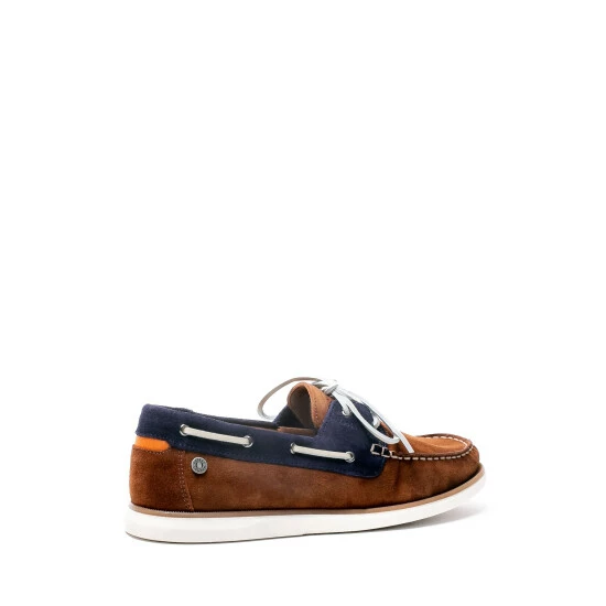 Boat shoes crafted for Osprey London in Portugal in Navy and Tan suede with contrast stitching, a gunmetal branded pin with White leather laces and a white gum sole completes this style. Featuring flat, white leather laces threaded through gunmetal eyelets. The tongue is laser embossed with the Osprey London logo. Fully leather lined in tan with an Osprey London branded cushioned insock for comfort.