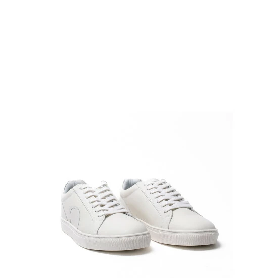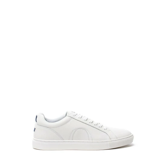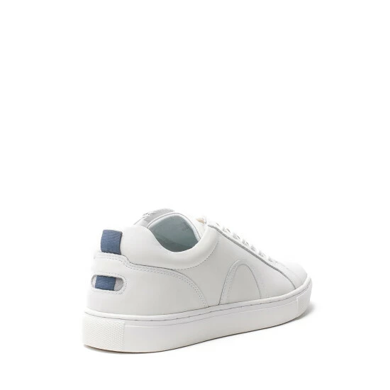 Luxury white leather sneakers, crafted for Osprey London with a signature ‘O’ appliquéd on the sides. White flat laces. The tongue is laser print embossed with the OSPREY LONDON logo in pewter. Fully leather lined in white with an OSPREY LONDON branded cushioned insock for comfort. Denim blue pull tab for an added pop of colour at the heel and a textured base for added grip.