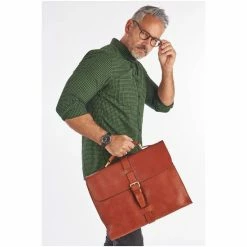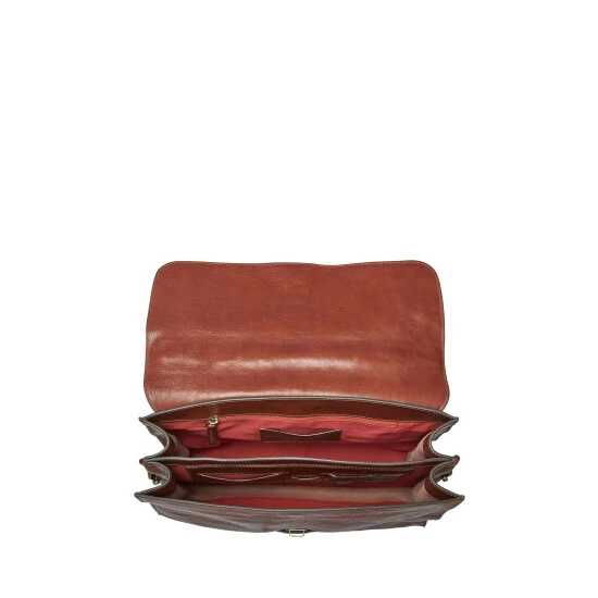 Handcrafted in Florence, this most handsome of leather briefcases is a masterful combination of function and style. Every detail of The Knighton Briefcase is considered, from the width of the rolled leather handle to the adjustable webbing strap with leather shoulder pad for added comfort. The leather luggage tag on the handle is a useful touch for the business traveller, while the two-part interior with pockets for mobile phone and slots for pens and business cards is a boon to help stay organised on the go. A4-compatible in size, The Knighton Briefcase is constructed to be expanded or contracted as required, with concertinaed sides and an ingenious buckled strap that feeds through and over the bag securing the contents in transit, but with a quick-release catch to allow easy access to the contents of the bag when required.