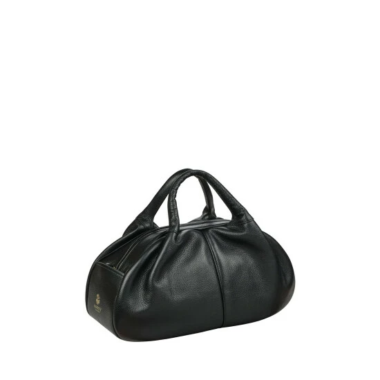 OSPREY LONDON semi-structured handbag, crafted by hand in sumptuously soft Italian grainy hide leather with smart self-coloured stitching. Features two soft, rolled leather top-handles: carry in the hand or on the wrist. Fastens along the top with a gold metal zip.